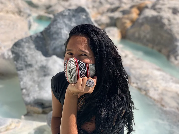 This mask is made by imitating the fabrics of nomadic villages and towns in the Middle East. For centuries, the Bedouins have been making their fabrics, originally made with goat hair or sheep or camel wool cloth. Obviously my mask is not made of that material, since now there are reproductions and designs of Bedouin fabrics with synthetic or cotton threads, like those of my mask, but it is still special. It fulfills its function of covering the nose and mouth, but it also gives a different touch while protecting me and other people from the virus.